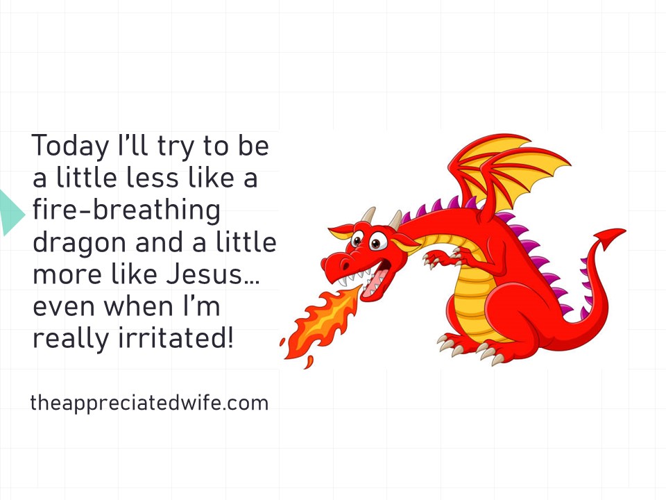 So, what can you do if you’ve tried to stop spewing mean, harsh, bitter words, and your attempts seem to fail most of the time? Well, the Bible gives us a big clue on what you need to do. Luke 6:45 says “The good person out of the good treasure of his heart produces good, and the evil person out of his evil treasure produces evil, for out of the abundance of the heart his mouth speaks.” The cure for a quick temper or critical tongue is to pray for God to change your heart! Ask God to fill your heart with love and compassion and patience for your husband. Pray this daily.