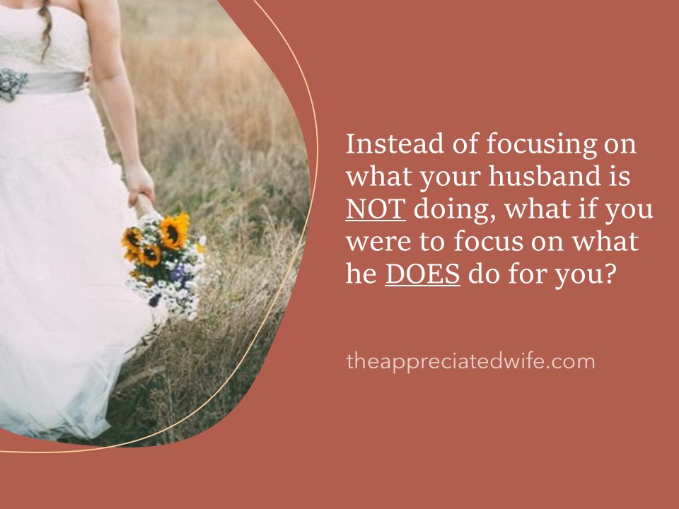 Bottom line:  Maybe your husband is really doing a pretty good job fulfilling God’s command to husbands in Ephesians 5:25 where he tells men to “love your wives just as Christ loved the church and gave himself up for her”.   The question is: How are YOU doing in fulfilling God’s command to wives in Ephesians 5:33 where he tells women, “the wife must respect her husband”?