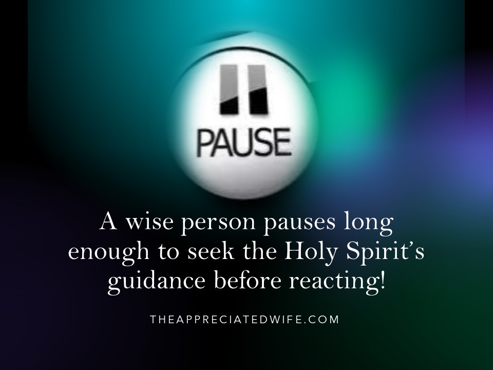 Back to my story. When God stopped me from laying into my relative the other day and I decided to leave the “confrontation” up to the Holy Spirit…that relative actually came to me and apologized within a few hours. Today’s question for you: Do you pause long enough to get guidance from God before reacting?