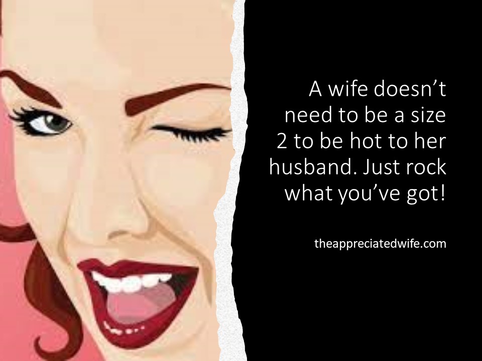 But I’m going to challenge you to change your outlook. Yes, we do need to do what we can to be attractive. If we need to drop 50 lbs, we need to work on that. If we need to exercise to tone up the flab, we need to work on that. However, once we make a reasonable effort to look our best, our attitude changes the rest! You’ve got to rock what you’ve got! Think sexy! View yourself as sexy when you’re with your husband. Be spunky and playful and maybe even a little bit sassy with him. Don’t be ashamed of your body. Your confidence in who you are will be very sexy to him! In Proverbs 23:7, the Bible says “For as he thinks in his heart, so is he.” In other words, when you start viewing yourself as sexy and attractive to your husband, you will become sexy and attractive to him!