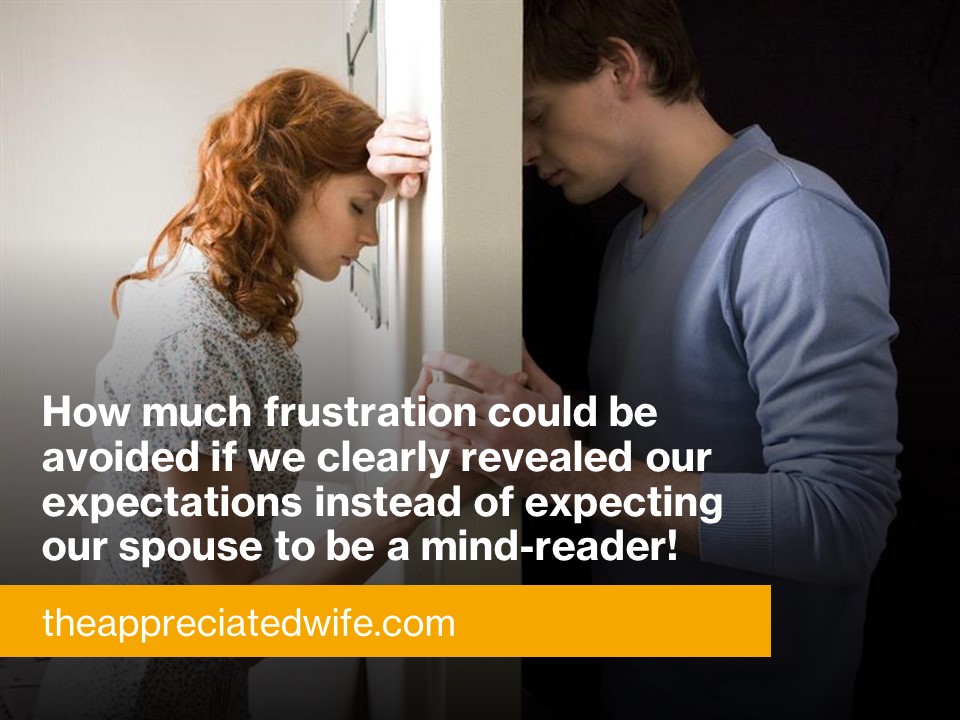 Even if you have a great marriage, we will all experience moments of frustration with our husbands from time to time. Well, one key to resolving those frustrations (and avoiding them in the future) is to understand the cause. In my experience, the cause is typically “unmet expectations”. We consciously or even subconsciously expect our husbands to act in a certain way, and when they don’t, we get really frustrated!