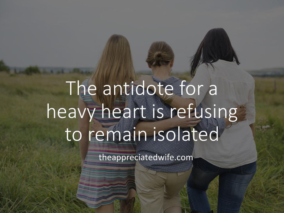 Even though it would be so helpful to reach out to some godly female friends, many of us tend to isolate during really hard times instead. Unfortunately, that only makes it easier for Satan to beat you down. With no other voices speaking hope into your life, he has free realm to whisper one lie right after another.